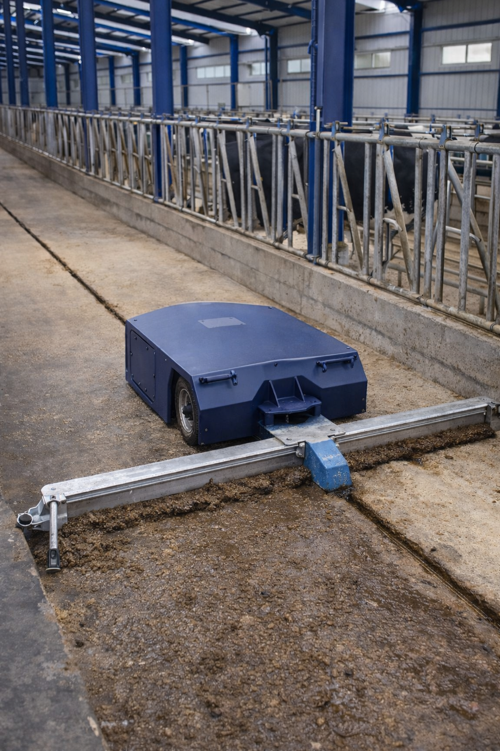 Ahır içerisinde herhangi bir ray veya kılavuz tele ihtiyaç duymadan, lazer tarayıcılar ve sensörler yardımıyla rotasını belirler.
